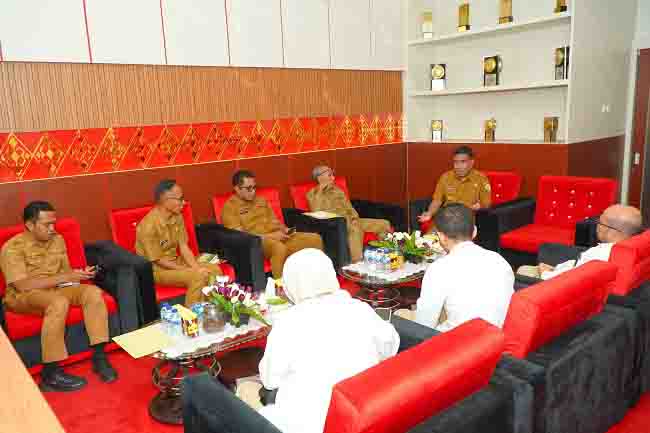 TIDORE – Wakil Wali Kota Tidore Kepulauan Ahmad Laiman menerima kunjungan silaturahmi dari Balai Pengawasan Obat dan Makanan di Sofifi, Ermanto Siahaan bersama rombongan, di Ruang Kerja Wali Kota Tidore.