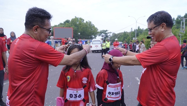 Peserta Family Run dilepas secara resmi oleh Wakil Wali Kota Tidore Kepulauan Ahmad Laiman, didampingi Sekretaris Daerah Ismail Dukomalamo, Ketua TP PKK Hj. Rahmawati Muhammad Sinen, Ketua I TP PKK Sumiyati Ahmad Laiman, Ketua DWP Nuraen Ismail Dukomalamo dan Pimpinan OPD di Lingkup Pemerintah Kota Tidore Kepulauan, di Jalan Pantai Tugulufa, Minggu (25/1/2026).
